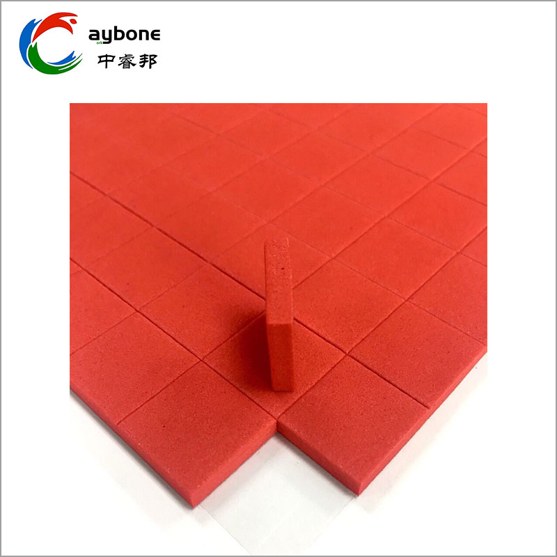 Röda Eva gummikuddar med limÄr bearbetade av svart Eva-gummi. Den konventionella tjockleken på Eva-gummikudden är 2Mm~5Mm. Hårdheten för konventionella specifikationer är cirka 60 grader, och material med olika hårdhet som 38 grader, 70 grader och 80 grader finns tillgängliga. Förutom vanlig tjocklek och hårdhet kan annan tjocklek, hårdhet och storlek anpassas efter kundens behov.